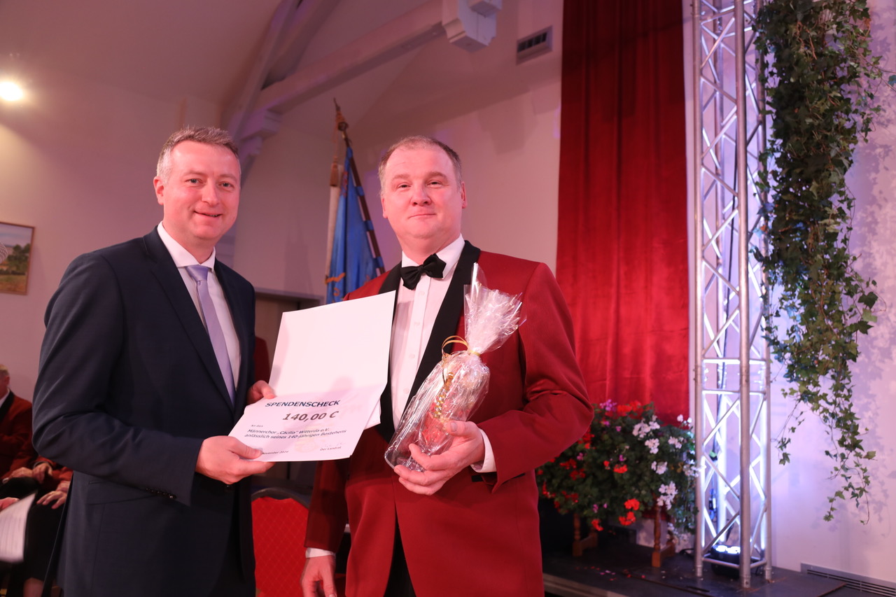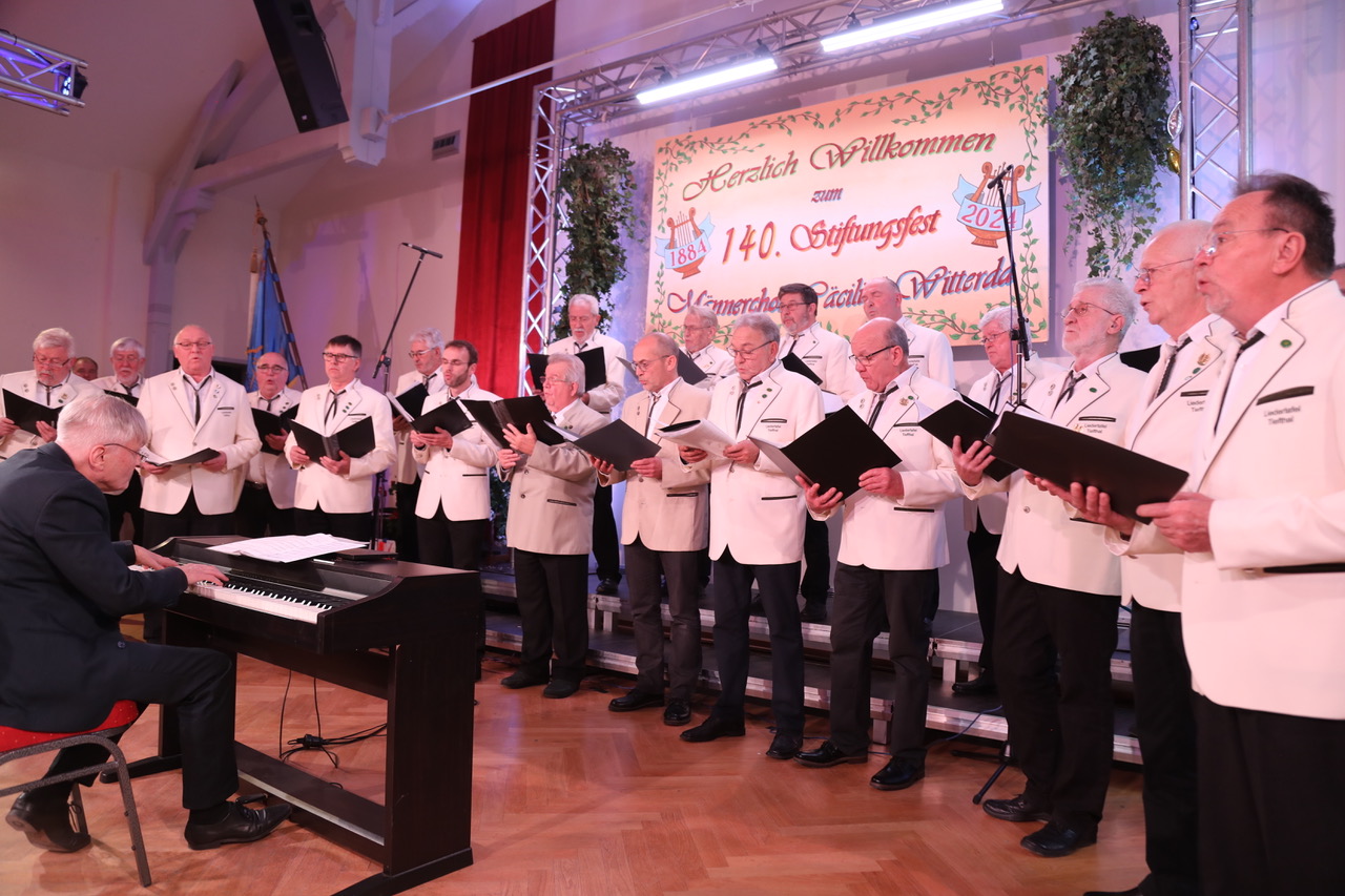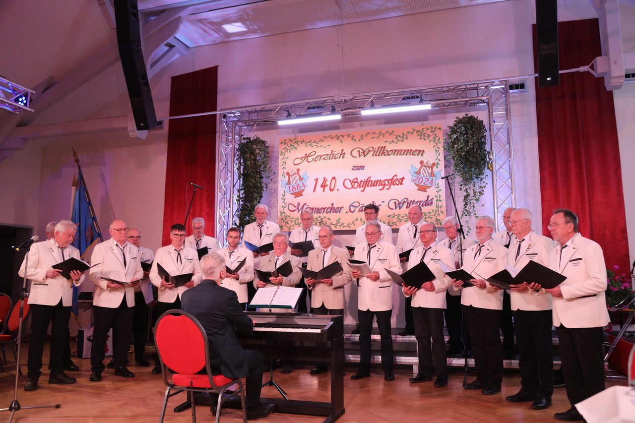 Es war ein beeindruckendes Fest am vergangenen Samstag mit dem der Witterdaer Männerchor Cäcilia sein 140jähriges Bestehen feierte. Viele Gäste waren in den Saal des „Goldenen Widder“ zum Stiftungsfest gekommen, unter ihnen auch Landrat Christian Karl und die Bürgermeister Renè Heinemann (Witterda) und Heiko Koch (Elxleben).