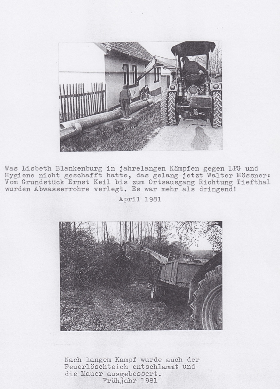 Dass die Wasserleitung aus einem privaten Brunnen unterhalb des Ortes gespeist wurde, eine veraltete Pumpstation bei Überlastung oder Frost oftmals ausfiel, machte die Versorgung der Haushalte ebenso unzuverlässig wie wenn der Strom ausfiel – was zu DDR-Zeiten keine Seltenheit war.