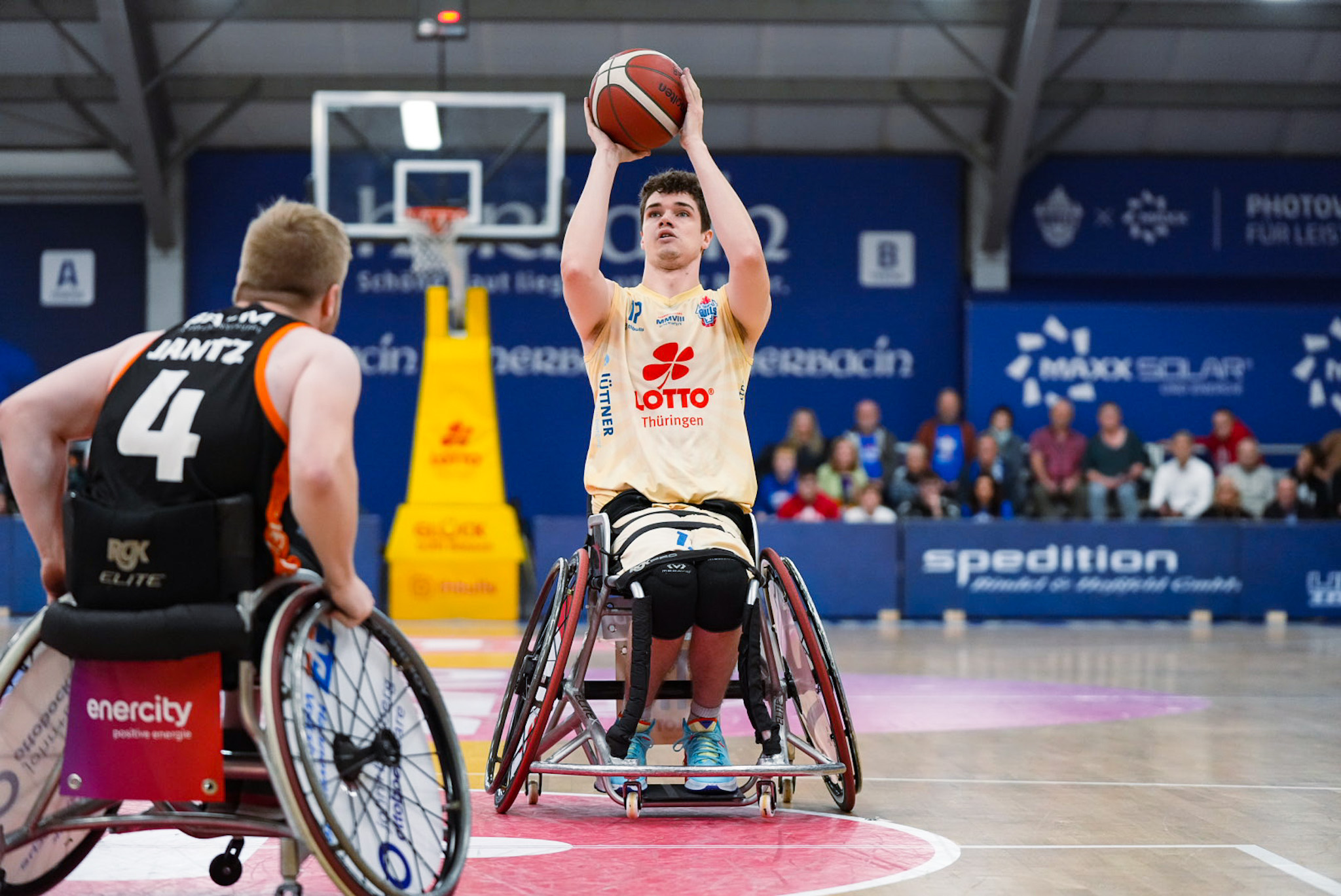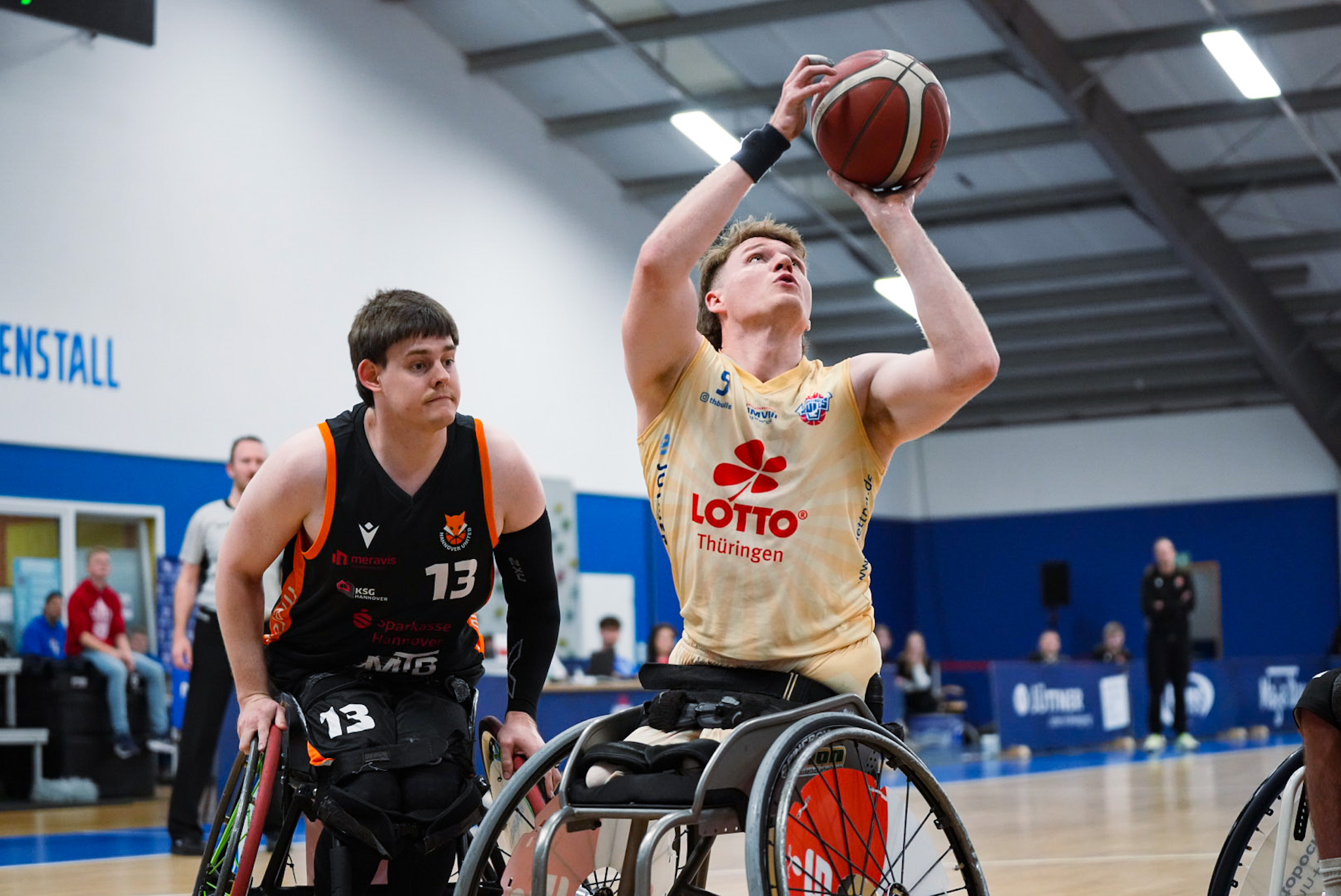 Am ersten Spieltag der Rollstuhlbasketball-Liga nach der Sommerpause war die Halle in Elxleben ausverkauft. Erst im Oktober waren die Europameisterschaften ausgetragen worden, weswegen sich der Saisonstart verschob.